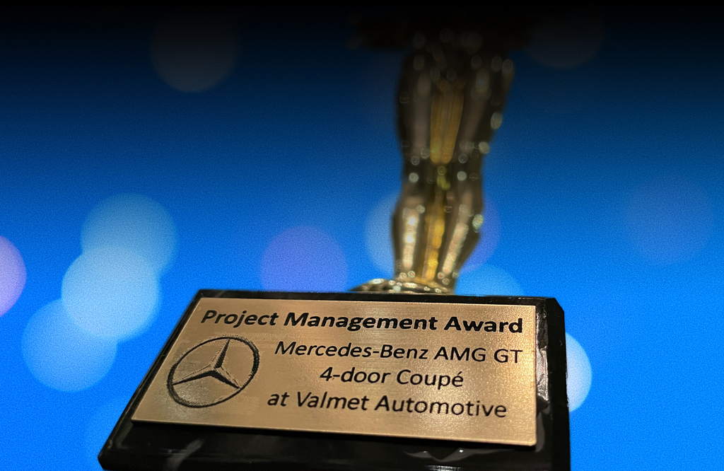 We received a Project Management Award from Mercedes-Benz in 2023 for the successful execution of series production relocation of Mercedes-AMG 4-door Coupe from Germany to Finland.